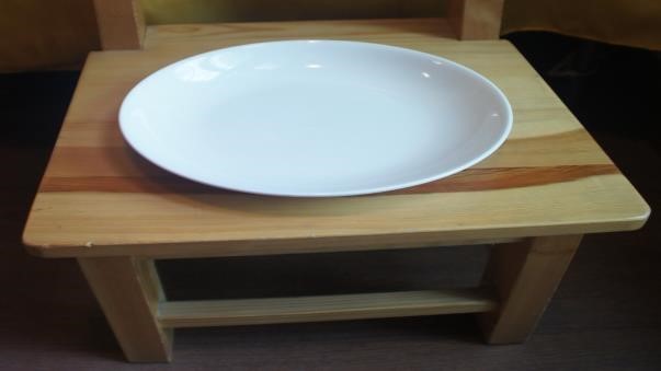 ● 可以在佛台旁边的地板上垫盒子或木头,或者使用新的专用的凳子,上面放盘子。